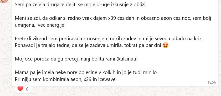 Zmagovalna kombinacija: X39 + Aeon (ker ob manjši stopnji vnetja v telesu matične celice bolje delujejo)