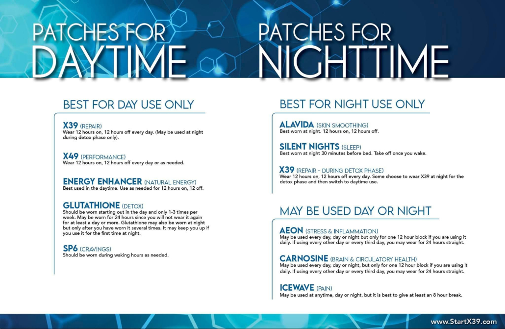 Tabela prikazuje, kaj lahko pričakujemo ob redni uporabi obližev X39 – vendar je pomembno vedeti, da se ti učinki nanašajo na povprečnega, zdravega človeka.